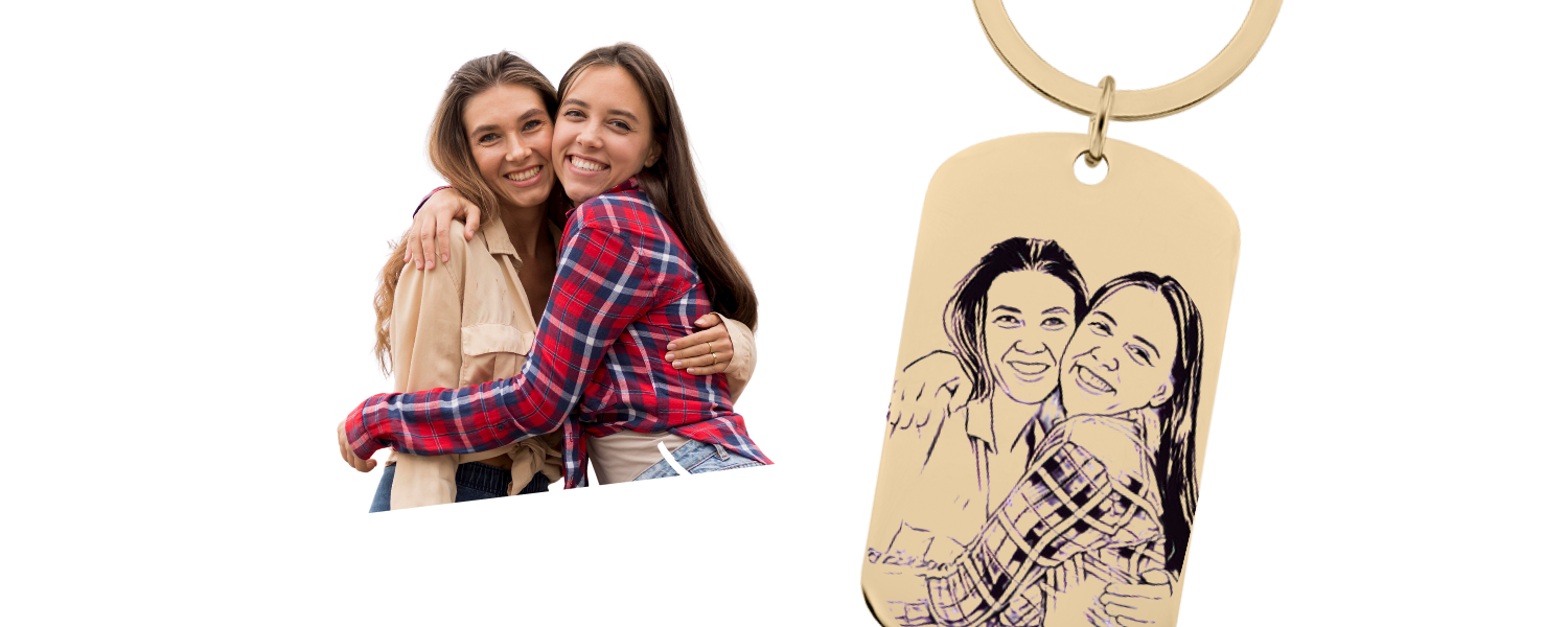 Personlig Nøkkelring med Militærtagg, Foto og Gravert Tekst