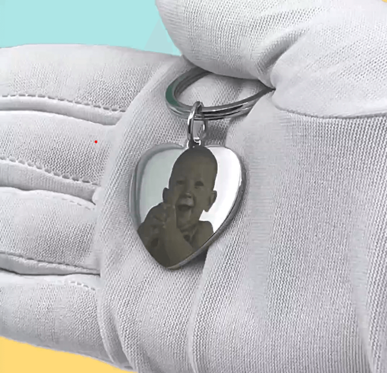 Hyll spesielle øyeblikk med en personlig nøkkelring med hjertebilde og gravert tekst. Med denne sjarmerende nøkkelringen kan du gravere et personlig foto på hjertet og legge til en meningsfylt tekst, slik at det blir en perfekt og personlig gave for å feire enhver anledning. Denne graverte nøkkelringen er perfekt for bursdager, jubileer eller andre spesielle anledninger, og er en fin måte å bevare minner på. Den er laget i holdbart, rustfritt stål, noe som sikrer et varig minne.